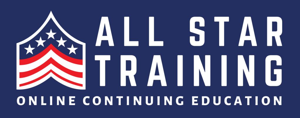 All Star Training oferă cursuri online, aprobate de stat, care sunt concepute pentru a fi accesate ușor și rapid. Ei furnizează cele mai actualizate informații și, cel mai important, raportează finalizarea cursurilor tale direct către consiliul de licențiere, eliminând efortul administrativ din partea ta.