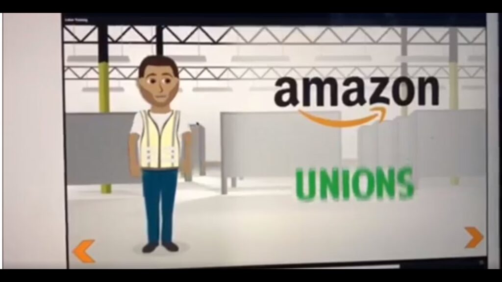 Chiar și înainte de a fi declarat o „amenințare existențială” de către sindicate puternice, Amazon își pregătea deja managerii pentru a intercepta sentimentele pro-sindicale. Un videoclip de instruire de 45 de minute, scurs în 2018 și destinat managerilor Amazon, inclusiv celor de la Whole Foods (achiziționat de Amazon în anul precedent), a dezvăluit o abordare fermă împotriva organizării muncii. Videoclipul, împărțit în șase secțiuni, era conceput pentru a oferi managerilor „instrumentele necesare pentru succes atunci când vine vorba de organizarea muncii”. Naratorul preciza clar că, deși compania „nu este anti-sindicală, nu este nici neutră”.