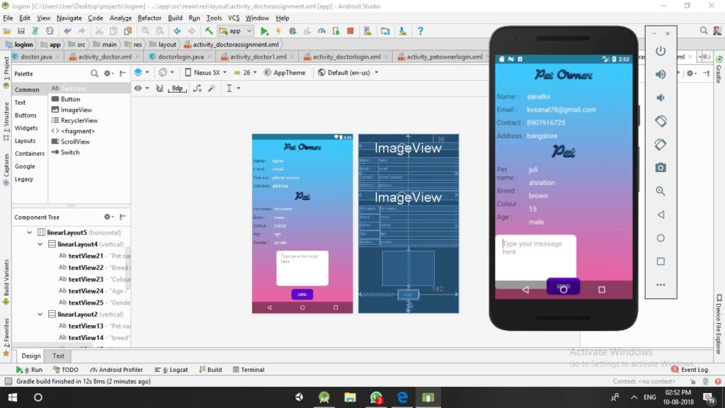 Codul Java pentru acest exemplu (MainActivity.java) este simplu și se concentrează pe gestionarea evenimentului de click al butonului de login, afișând un mesaj Toast. Aceasta ilustrează integrarea UI cu logica aplicației.