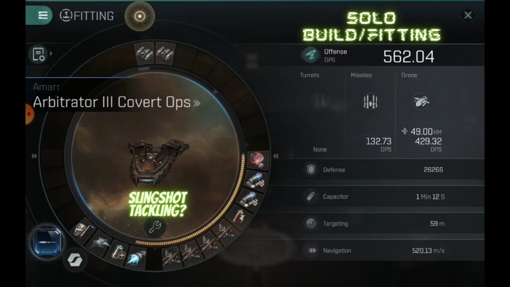 Un Arbitrator bine echipat se concentrează pe amplificarea acestor avantaje. Prin montarea mai multor module de disrupție a armelor, poți afecta simultan mai multe ținte sau poți aplica un debuff extrem de puternic unei singure nave prioritare. Dronele tale pot fi folosite pentru a adăuga presiune asupra țintelor deja perturbate de EWAR, pentru a distruge dronele inamice sau chiar pentru a intercepta fregatele rapide care încearcă să te ancoreze. Este o navă care cere o înțelegere bună a situației de luptă și o comunicare eficientă cu flota pentru a-și maximiza impactul.