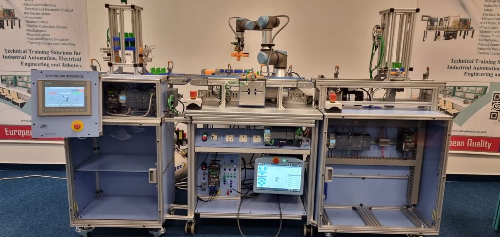 - Integrated CPS Flexible Assembly Line (Smart-Flexible-Assembly-Training-System): O soluție de ultimă generație care simulează o linie de asamblare flexibilă, integrând conceptul de Sisteme Ciber-Fizice (CPS) și principiile Industriei 4.0. Studenții pot învăța despre automatizare inteligentă, robotica colaborativă, colectarea și analiza datelor în timp real și optimizarea proceselor de producție.