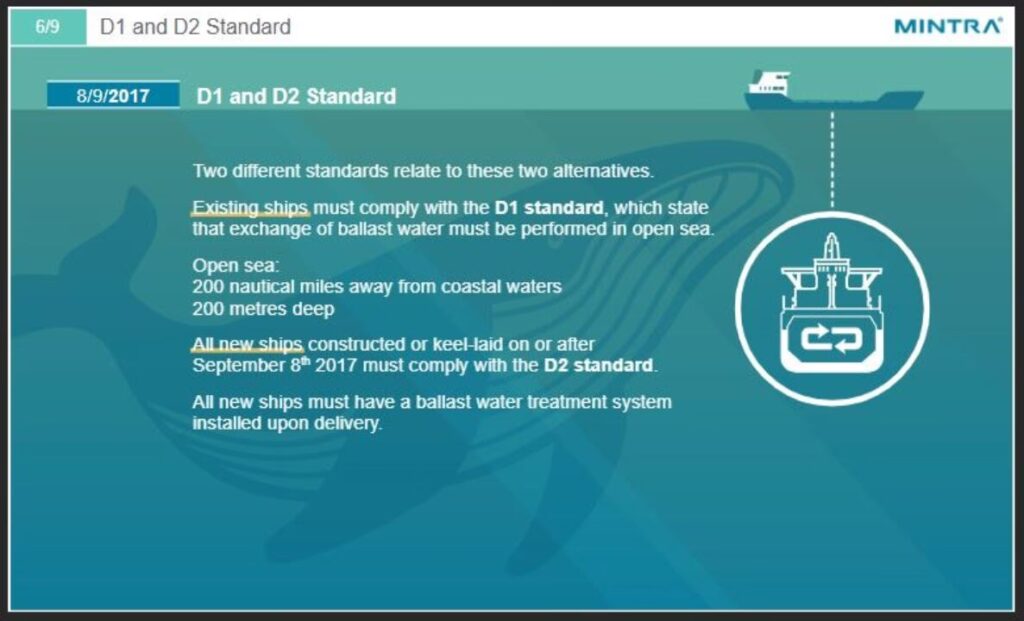 - Aspectelor legate de operarea, monitorizarea și întreținerea echipamentelor de tratare a apei de balast pentru a asigura conformitatea cu standardele D-2.