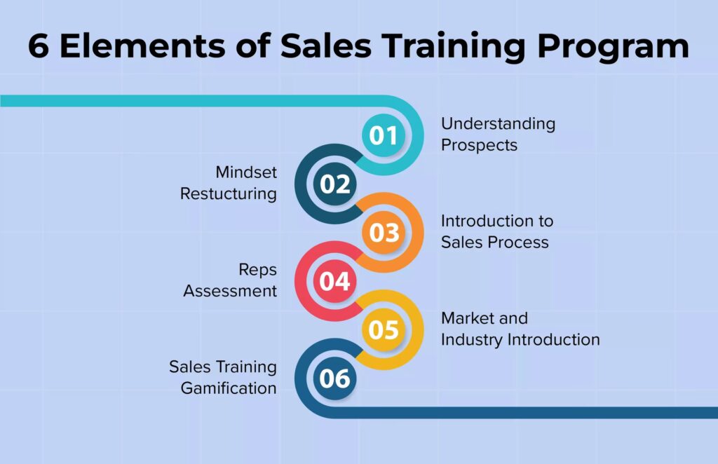 Un antrenament în vânzări trebuie să acopere cunoștințe despre produs, abilități de ascultare activă, procesul de vânzare, prospectare, abilități de rezolvare a problemelor, utilizarea CRM-ului, gestionarea obiecțiilor și închiderea tranzacțiilor.