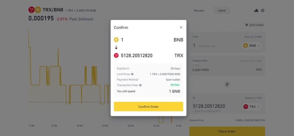 Pasul 4: Plasarea unei Comenzi de Cumpărare pentru TRON (TRX)