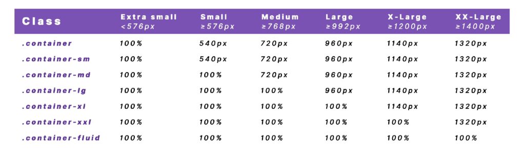 .container-xxl | 100% | 100% | 100% | 100% | 100% | 1320px |