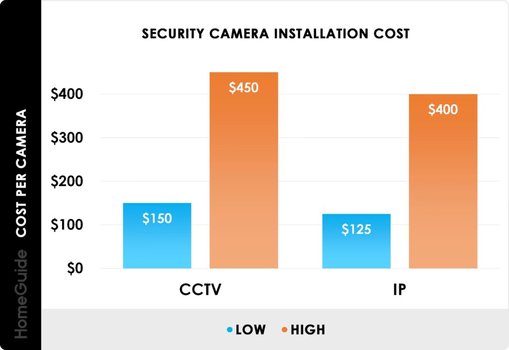 Tarifele pentru manoperă variază în funcție de complexitatea sistemului și de locație. Un sistem cu o singură cameră poate fi instalat în mai puțin de o oră, costând de la 30 GBP. Un sistem multi-cameră, complet cablat, poate dura de la câteva ore la o zi întreagă și poate costa între 200 GBP și 800 GBP pentru instalare. Electricienii autorizați pot percepe între 260 USD și 340 USD pentru 4 ore de serviciu.