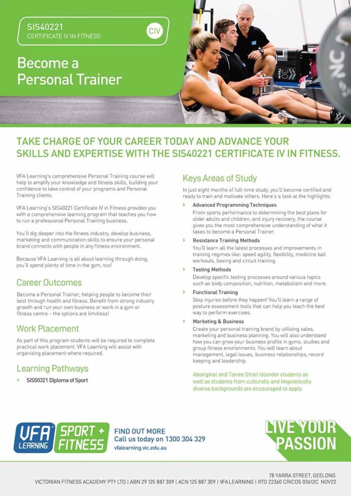 În concluzie, Certificatul IV în Fitness nu este doar o calificare, ci o investiție în viitorul dumneavoastră profesional. Vă oferă cunoștințele, abilitățile și încrederea necesare pentru a deveni un Antrenor Personal de excepție, capabil să creeze programe personalizate, să înțeleagă complexitatea corpului uman și să gestioneze cu succes o afacere. Este șansa dumneavoastră de a vă transforma pasiunea într-o carieră plină de satisfacții, unde puteți cu adevărat să schimbați vieți și să inspirați un stil de viață mai sănătos și mai activ. Drumul către a fi cel mai bun antrenor personal începe aici!