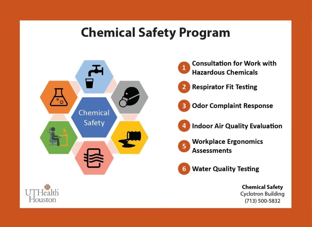 O parte majoră a instruirii în siguranța chimică ar trebui să fie dedicată manipulării și depozitării corecte a produselor și echipamentelor chimice. Aceasta include: