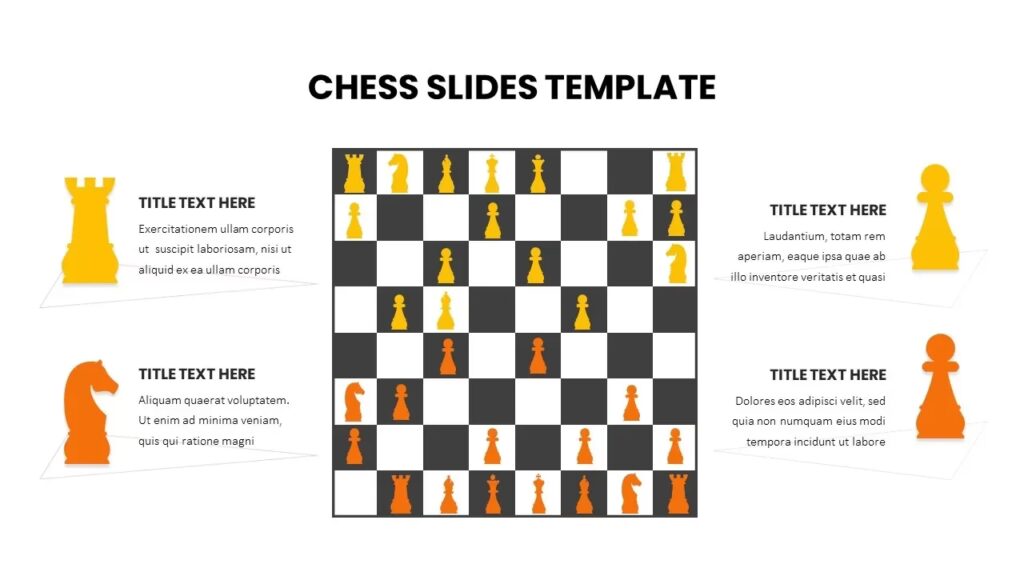 - Tablă de Șah Detaliată: Fundalul cu tablă de șah, cu cele 64 de pătrate, este adesea disponibil în diferite scheme de culori (alb-verde, alb-negru etc.). Poți chiar schimba culorile pătratelor pentru a se potrivi cu brandul sau tema prezentării tale.
