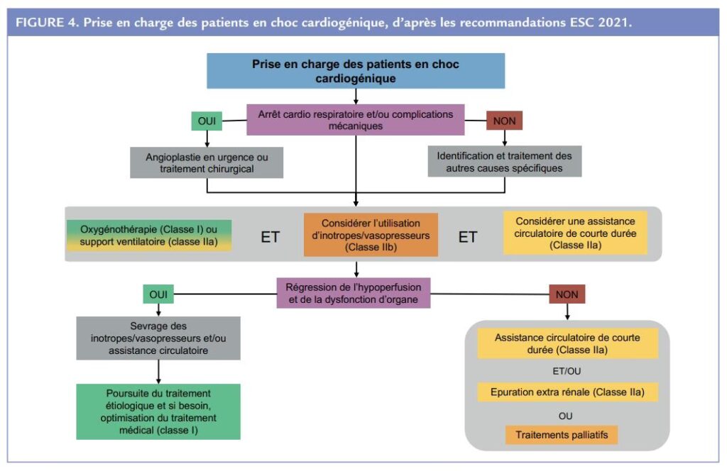 Managementul șocului cardiogen este o cursă contra cronometru și necesită o abordare rapidă și agresivă într-un mediu de terapie intensivă. Obiectivul principal este restabilirea perfuziei tisulare adecvate și stabilizarea funcției cardiace.