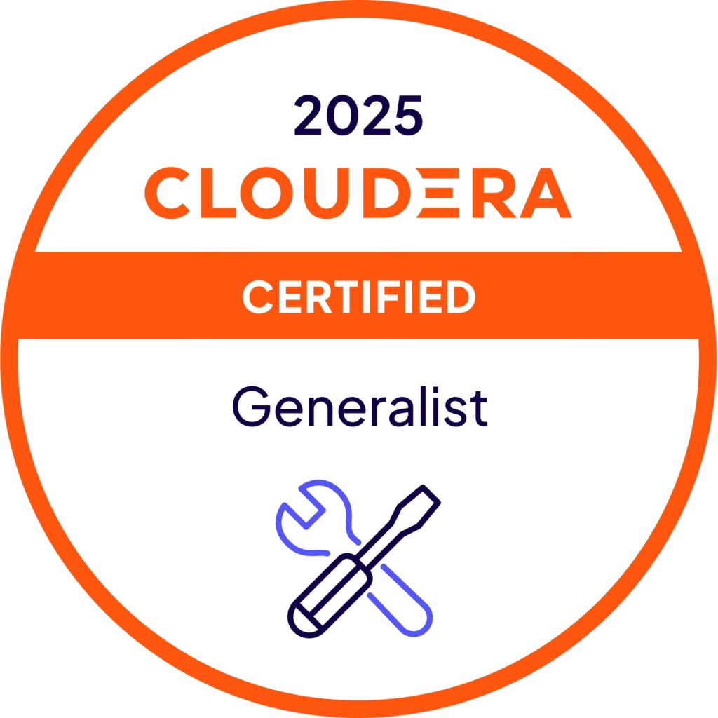 Această certificare este destinată inginerilor de date care utilizează platforma Cloudera pentru a construi și optimiza fluxuri de date complexe. Examenul testează abilitățile și cunoștințele necesare pentru a proiecta, construi, testa și implementa soluții de procesare a datelor. Acestea includ utilizarea eficientă a instrumentelor și tehnologiilor din ecosistemul Cloudera, cum ar fi Apache Spark pentru procesare distribuită, Apache Hive și Impala pentru interogări SQL, precum și instrumente pentru ETL (Extract, Transform, Load). Un inginer de date certificat Cloudera demonstrează capacitatea de a transforma datele brute în formate utile pentru analiză și aplicații, asigurând fiabilitatea și scalabilitatea pipeline-urilor de date.