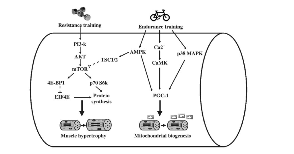 La nivel molecular, aceste două tipuri de antrenament activează căi de semnalizare diferite și, uneori, opuse. De exemplu, antrenamentul de anduranță activează AMPK, o enzimă care poate inhiba calea mTOR, crucială pentru sinteza proteinelor musculare și hipertrofie. Astfel, se creează un mediu celular care favorizează adaptările de anduranță în detrimentul celor de forță. Cu toate acestea, cercetările recente au adus o perspectivă mai nuanțată. S-a demonstrat că efectul de interferență nu este absolut și poate fi influențat de numeroși factori, inclusiv nivelul de pregătire al individului, frecvența, intensitatea și ordinea antrenamentelor, precum și timpul de recuperare și nutriția. Astfel, în loc să fie o barieră insurmontabilă, efectul de interferență este mai degrabă un puzzle complex, a cărui rezolvare necesită o înțelegere profundă a fiziologiei umane și o planificare meticuloasă a programului de antrenament.