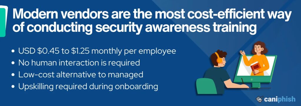 Costurile trainingului de conștientizare a securității pot varia foarte mult în funcție de mai mulți factori, inclusiv tipul de furnizor, dimensiunea companiei dumneavoastră și timpul necesar. Înțelegerea acestor costuri permite organizațiilor să ia decizii informate care se aliniază cu bugetul și nevoile lor de securitate. Trainingul de conștientizare este o investiție în postura de securitate a companiei dumneavoastră, ajutând la atenuarea riscurilor și la protejarea împotriva breșelor de date și a altor amenințări cibernetice. În medie, costul trainingului de conștientizare a securității poate varia semnificativ. Această variație depinde de numărul de angajați, tipul de training furnizat și frecvența sesiunilor de training. Cu toate acestea, unii furnizori moderni de training oferă opțiuni mai accesibile, cu costuri variind de la 0,45 USD la 1,25 USD pe utilizator pe lună. Acești furnizori utilizează automatizarea și soluții scalabile pentru a oferi training practic la un preț mai mic, făcându-l accesibil pentru afaceri de toate dimensiunile.
