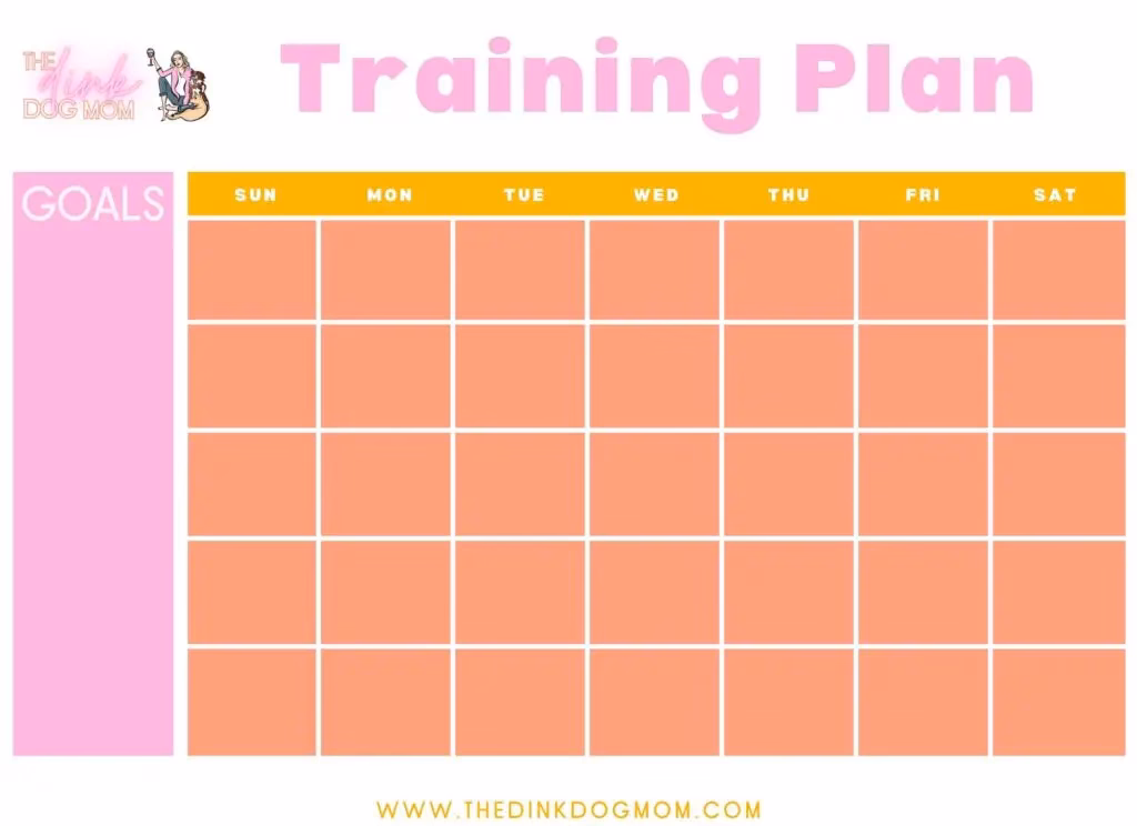 Once you have clearly defined your goals and what exercises/cues you can work on to reach those goals, it’s time to fill out the dog training plan template! The template is for one month at a time, so don’t feel like you have to do all goals, exercises, and cues at once.