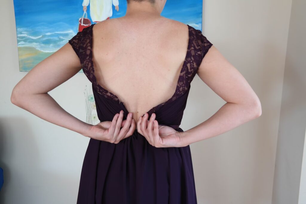 - Dacă purtați o rochie petrecută, asigurați-vă că vă puteți apleca, mișca și sta și că rochia rămâne înfășurată corespunzător.