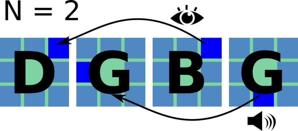 Provocarea vine de la conceptul 'N-Back', care indică numărul de pași înapoi cu care trebuie să compari stimuli. La nivelul N=1 (sau '1-back'), trebuie să compari stimulii curenți cu cei de la pasul anterior (cu 1 pas înapoi). La 3-back, de exemplu, trebuie să compari stimulii de la pasul curent cu cei de acum 3 pași. Pe măsură ce nivelul N crește, sarcina devine exponențial mai dificilă, deoarece trebuie să reții mai multe informații simultan.