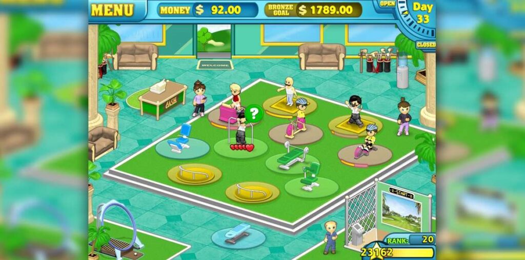 La bază, Fitness Frenzy este un joc de strategie rapidă, unde fiecare secundă contează. Ești responsabil pentru aproape fiecare aspect al funcționării sălii de sport. De îndată ce un client intră pe ușă, trebuie să-l întâmpini și să-l îndrumi către echipamentul potrivit. Fie că este vorba de o bicicletă eliptică, o bandă de alergat, un aparat de ridicat greutăți sau chiar o clasă de aerobic, trebuie să te asiguri că fiecare client primește antrenamentul optim. Dar nu este suficient să-i plasezi la un aparat; trebuie să le oferi și suport constant, să-i încurajezi și să te asiguri că sunt mulțumiți pe parcursul sesiunii lor. Satisfacția clienților se traduce direct în succesul tău financiar și în reputația sălii.