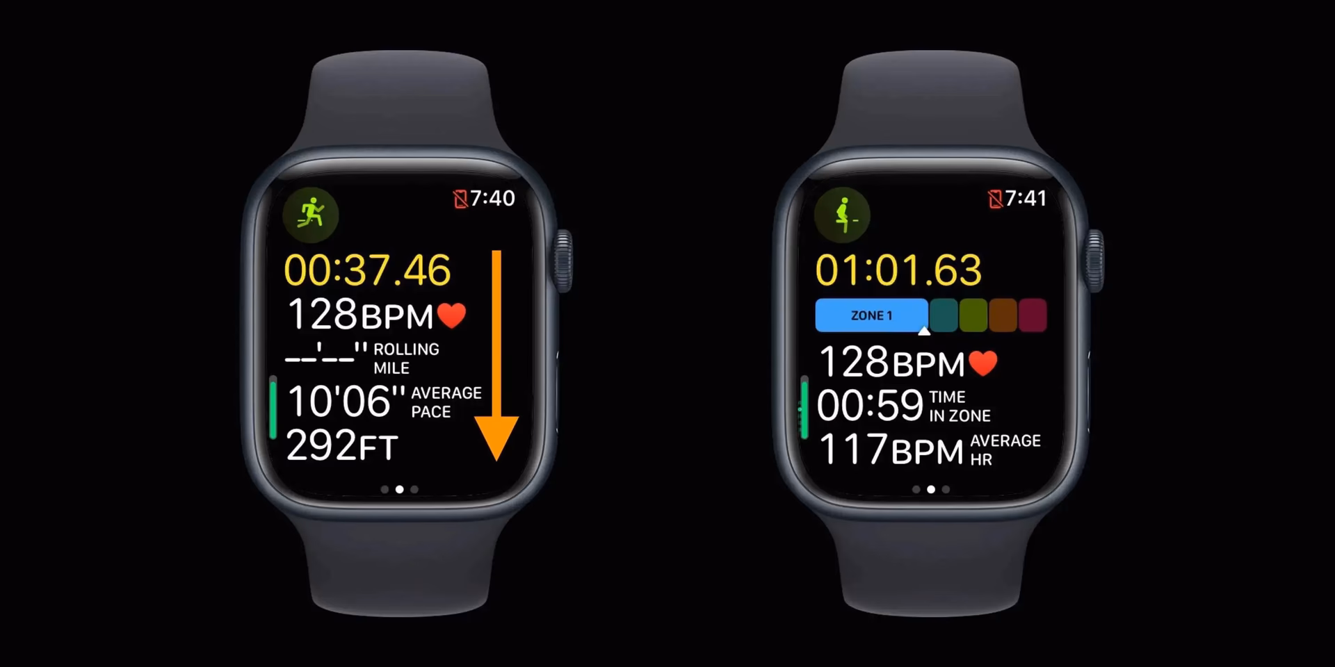 3. Rotește Digital Crown (coroana digitală) până ajungi la vizualizarea antrenamentului cu „Zone de Frecvență Cardiacă”.