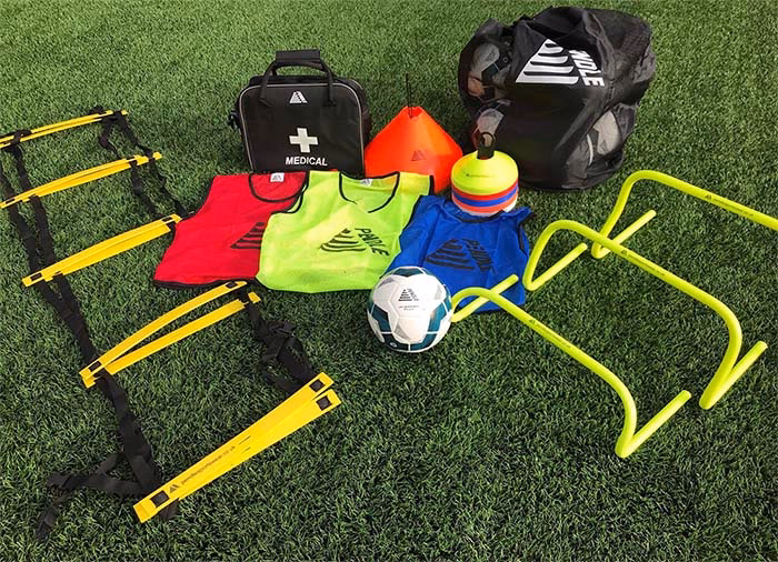 What equipment does a football skill trainer carry?