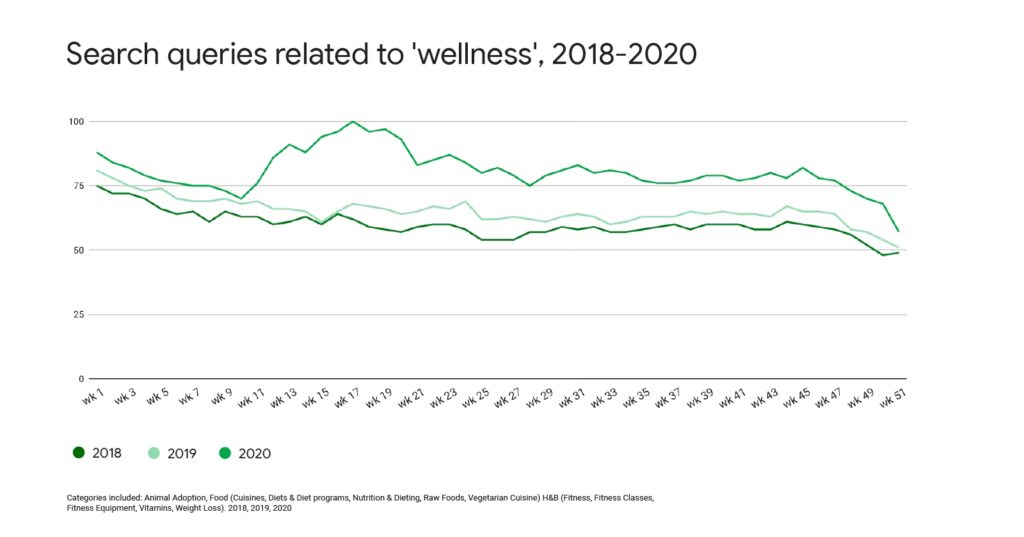 La începutul anului 2020, închiderea sălilor de sport comerciale a dus la o creștere masivă a căutărilor de echipamente de fitness pentru acasă. A existat o creștere de 71% a căutărilor de echipamente de fitness din 2019 până în 2020. În special, echipamentele cardio au înregistrat cea mai mare creștere, de 85% în 2020, în timp ce echipamentele de forță au avut o creștere mai modestă de 52%. Cu toate acestea, dacă ne uităm la situația actuală, echipamentele de forță au înregistrat cea mai mică scădere, de doar 4%, fiind încă mult peste cifrele dinainte de 2020 și foarte asemănătoare cu cele din pandemie. În contrast, echipamentele cardio au scăzut cu 34% de la vârful din 2020. Chiar și cu această scădere, tendințele de echipamente de fitness în 2023 sunt încă mai mari decât cele din 2019, cu o creștere de 33% a căutărilor.