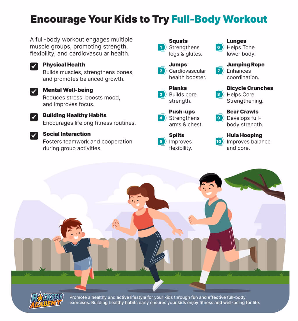 Îmbunătățirea forței la copii nu înseamnă neapărat ridicarea de greutăți. În schimb, copiii pot face flotări, abdomene, tracțiuni și alte exerciții care ajută la tonifierea și întărirea mușchilor. Ei își îmbunătățesc, de asemenea, forța atunci când se cațără, fac un stat în mâini sau se joacă de-a trânta. Exercițiile de întărire musculară și cele aerobice, cum ar fi alergatul, săriturile și hopping-ul, ajută, de asemenea, la construirea unor oase puternice.