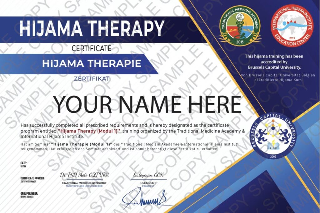 Hijama Clinic din Marea Britanie oferă un curs de certificare cuprinzător, conceput pentru a vă dota cu cunoștințele și abilitățile necesare pentru a practica terapia Hijama. Cursul este disponibil atât într-un format intensiv de o zi, cât și online, asigurând accesibilitate la nivel mondial. Acesta este predat de Directorul Hijama Clinic și de practicanți certificați, garantând o instruire de înaltă calitate.