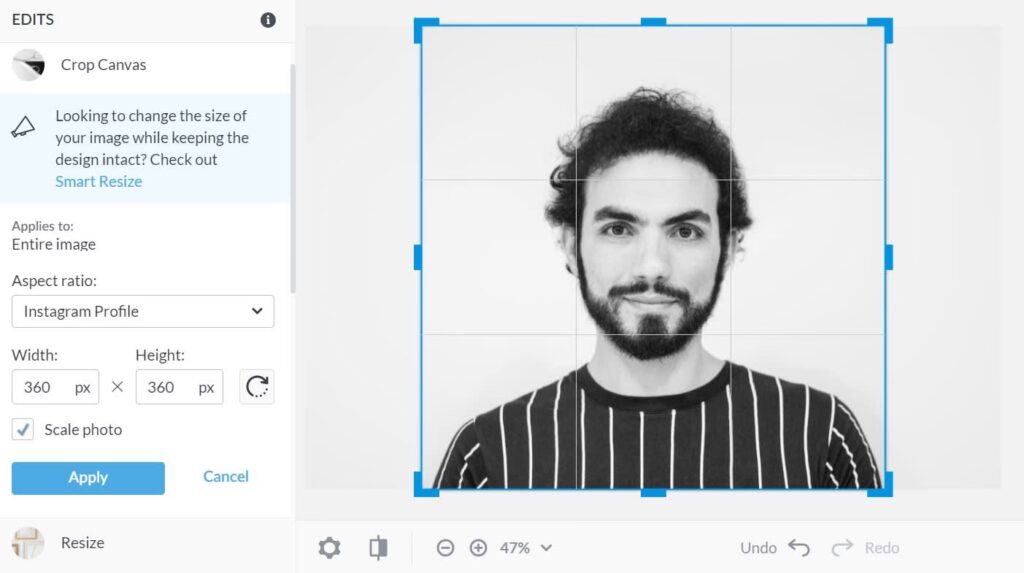 Procesul de redimensionare pentru PFP este similar cu cel pentru postările obișnuite, dar cu un focus pe raportul 1:1. Multe instrumente online de redimensionare dedicate profilurilor Instagram îți permit să încarci imaginea, să o centrezi și să vezi o previzualizare a modului în care va arăta în forma circulară. Acestea te ajută să ajustezi compoziția înainte de a descărca imaginea finală.