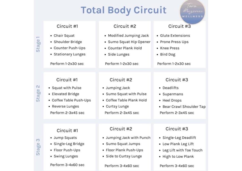 A: Pentru început, 2-3 circuite complete sunt un obiectiv excelent. Pe măsură ce te simți mai puternic și mai rezistent, poți crește treptat la 4-6 circuite. Ascultă-ți corpul și nu te forța dincolo de limitele tale, mai ales la început.