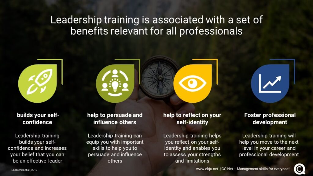 Liderii de succes, în orice domeniu, sunt mentori și antrenori pentru talentele interne, oferind în același timp o traiectorie clară partenerilor externi. Angajând, susținând și inspirând, liderii de succes favorizează o atmosferă de încredere și motivație în orice mediu. Poate ești la începutul carierei tale sau al unei inițiative antreprenoriale și cauți să-ți dezvolți abilitățile și să-ți găsești propriul stil. Sau poate ești bine stabilit în cariera ta și răspunzi naturii schimbătoare a leadershipului în climatul actual de schimbări rapide. Sau poate este pur și simplu din interes personal. Oricare ar fi ruta ta, antrenamentul de leadership oferă o multitudine de beneficii.