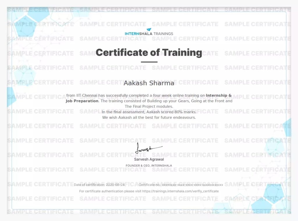 - Certificate de IIT Madras Pravartak: Internshala colaborează cu IIT Madras Pravartak, un hub de inovație tehnologică de top, pentru a oferi cursuri specializate. Această colaborare adaugă un strat suplimentar de prestigiu și asigură un curriculum de înaltă calitate, aliniat la standardele academice și industriale de excelență.
