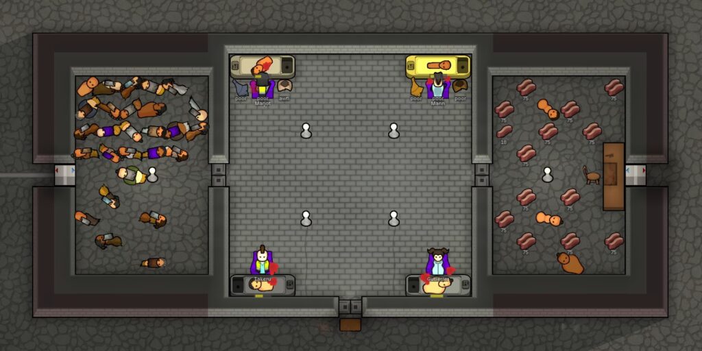 • Gestionarea Urgențelor: În cazul unui raid major, asigură-te că ai un plan pentru evacuarea răniților în spital și că medicii sunt disponibili. Poți seta o zonă de spital ca zonă de adunare pentru răniți.