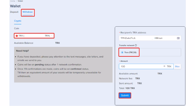 - Verifică adresa destinatarului: Confirmă de trei ori că adresa pe care o introduci este adresa ta de depunere pentru Ethereum (ETH) pe Binance, nu o adresă de TRX mainnet. Binance oferă adrese de depunere diferite pentru fiecare rețea.