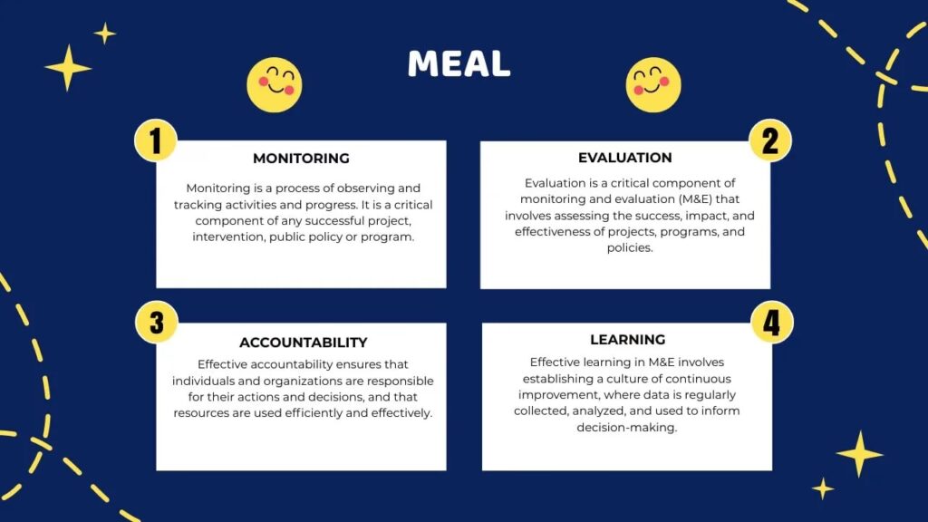 În esență, MEAL este indispensabil pentru a asigura că organizațiile livrează programe bazate pe dovezi, eficiente și sustenabile, fiind în același timp responsabile în fața părților interesate. El oferă o abordare structurată a managementului programelor, permițând identificarea succeselor, a provocărilor și a zonelor de îmbunătățire, precum și utilizarea datelor și a feedback-ului pentru a lua decizii informate.