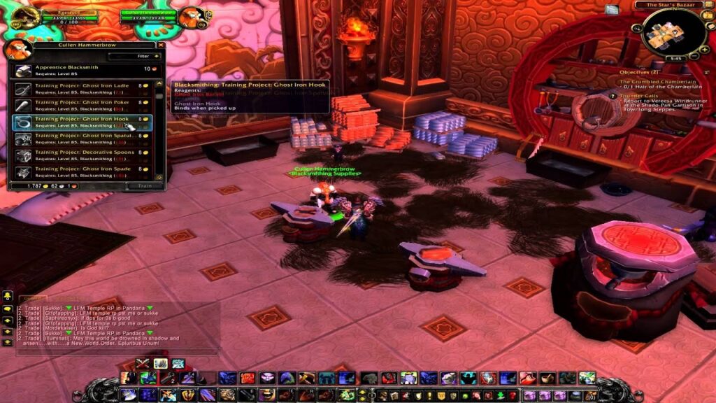 La nivelul 65 al personajului, învață Fierărie Mare Maestru (Grand Master Blacksmithing) de la antrenor.