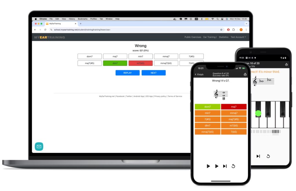 - Acorduri: Combinații de trei sau mai multe note cântate simultan. Antrenamentul te ajută să diferențiezi acorduri majore de minore, diminuate de mărite, și să recunoști inversiunile acestora.