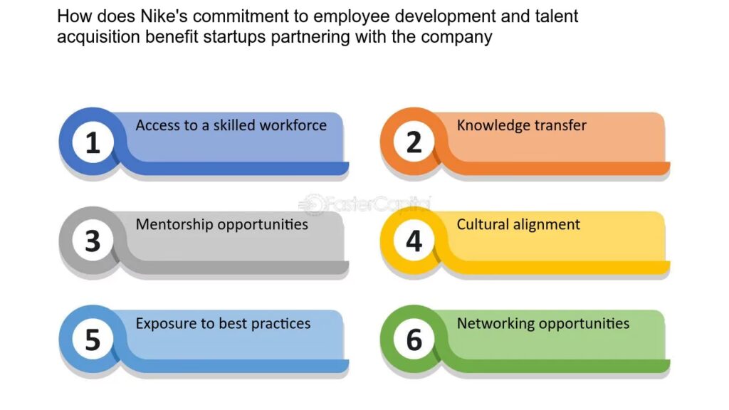 Angajamentul Nike față de creșterea și dezvoltarea angajaților este exemplificat prin programele sale robuste de formare și dezvoltare. Compania recunoaște că investiția în abilitățile și cunoștințele angajaților săi este esențială pentru cultivarea unei culturi de învățare continuă și inovație. Inițiativele de formare ale Nike cuprind o gamă largă de oportunități, de la programe de integrare pentru noii angajați la sesiuni de formare specializate pentru angajații existenți care doresc să-și îmbunătățească expertiza. Prin oferirea accesului la resurse de ultimă generație, ateliere și programe de mentorat, Nike își împuternicește forța de muncă să rămână înaintea tendințelor din industrie și să exceleze în rolurile lor respective.