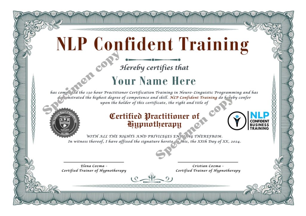 - Licensed Trainer of Neuro-Linguistic Programming®: Odată ce ai aceste două certificări, ești eligibil să te înscrii la programul de formare a trainerilor.