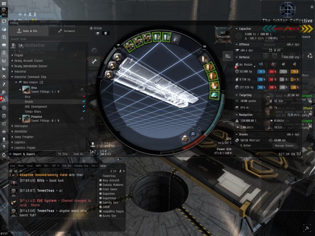 - Intervenția CONCORD: În high-security space (sisteme 0.5-1.0), CONCORD va interveni și va distruge navele care atacă fără justificare. Timpul lor de răspuns variază în funcție de sistem, dar este de obicei sub 10 secunde. O Orca cu EHP mare poate rezista până la sosirea lor.