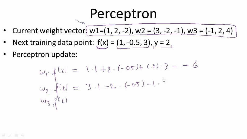 Algoritmul Perceptron actualizează ponderile și bias-ul luând în considerare un singur exemplu de antrenament la un moment dat, ceea ce îl face o formă de descendent subgradient stocastic. Regula de actualizare este simplă și puternică:
