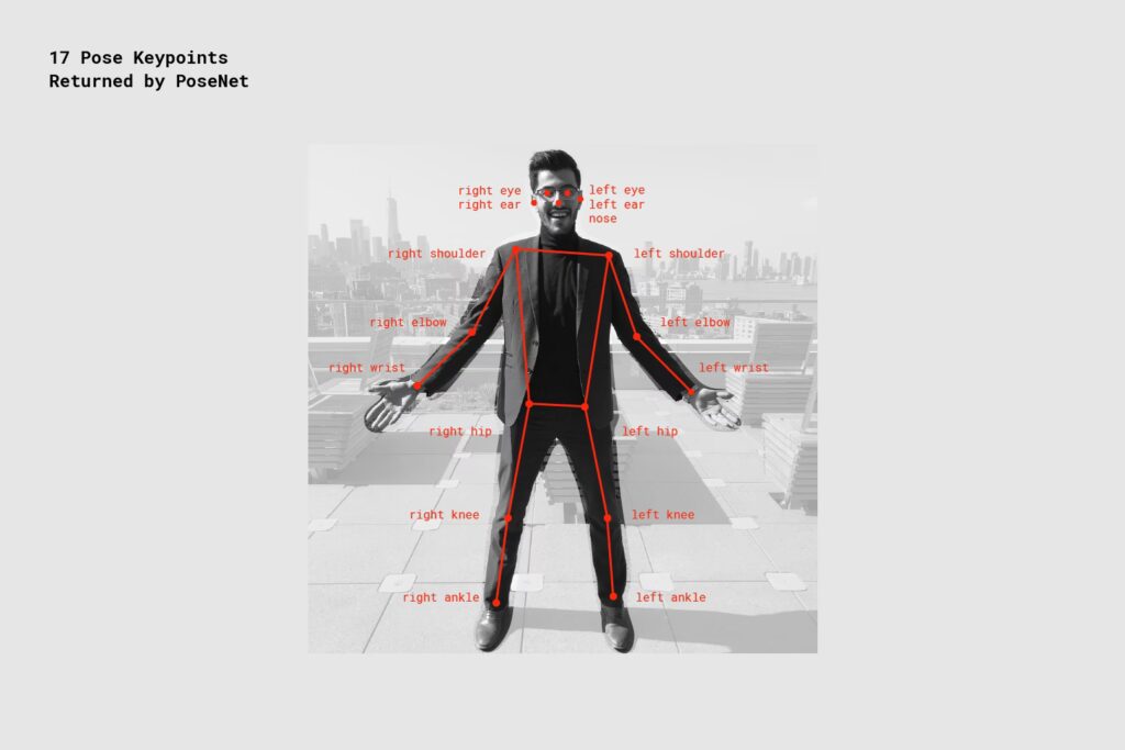 PoseNet este un model de estimare a pozei dezvoltat de Google, care rulează în timp real direct în browser, grație bibliotecii TensorFlow.js. Această capacitate de a rula în browser deschide uși către aplicații web interactive și accesibile, fără a necesita hardware puternic sau instalări complexe. PoseNet poate detecta 17 puncte cheie (keypoints) ale corpului uman, incluzând nasul, ochii, urechile, umerii, coatele, încheieturile mâinilor, șoldurile, genunchii și gleznele.