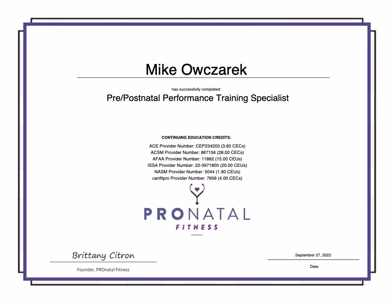 - Este o calificare specializată care echipează profesioniștii din fitness cu cunoștințele și abilitățile necesare pentru a antrena în siguranță și eficient femeile pe parcursul sarcinii și în perioada postpartum, luând în considerare schimbările fiziologice și nevoile specifice.