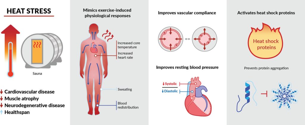 După un antrenament, treizeci de minute de saună pot induce adaptarea la căldură, permițând alergătorilor și altor atleți de anduranță să tolereze mai bine căldura în timpul competițiilor. Acest efect a fost observat după un minim de 6-7 sesiuni de saună post-antrenament. Adaptările includ: