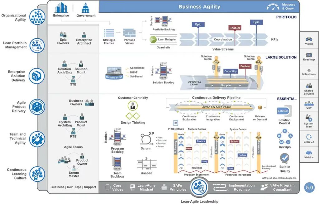 | Rol în Scalare | Nu are un rol direct în scalare. | Rol crucial în implementarea și susținerea agilității la scară mare prin SAFe. |
