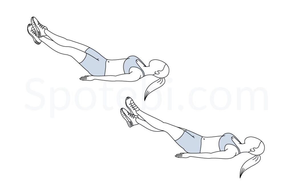 Aceasta este varianta de bază, descrisă anterior, care vizează în principal abdomenul inferior și flexorii șoldului. Picioarele se pot mișca fie în sus și în jos (flutter kicks), fie dintr-o parte în alta (cross-over scissors).