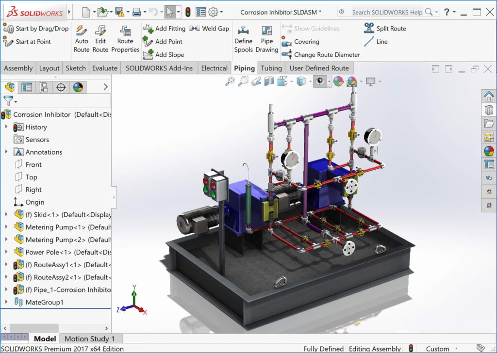 SOLIDWORKS Routing este o aplicație de design pentru sisteme de rutare și o librărie de fitinguri, complet integrată cu mediul familiar SOLIDWORKS 3D. Scopul său principal este de a facilita crearea sistemelor de conducte, tuburi și cabluri electrice, transformând o sarcină adesea laborioasă într-un proces intuitiv și automatizat. Indiferent dacă proiectați sisteme hidraulice, pneumatice, de cablare electrică sau fascicule de cabluri, SOLIDWORKS Routing vă oferă instrumentele necesare pentru a le integra perfect în ansamblurile dumneavoastră complexe.