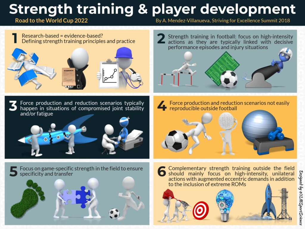 Sportul fotbalului impune cerințe fizice enorme asupra unui atlet. Un atlet trebuie să posede o capacitate de lucru adecvată, viteză, putere explozivă și forță absolută pentru a deveni un fotbalist de succes. Antrenorii trebuie să implementeze un program cuprinzător de forță și condiționare pentru a satisface cerințele sportului.