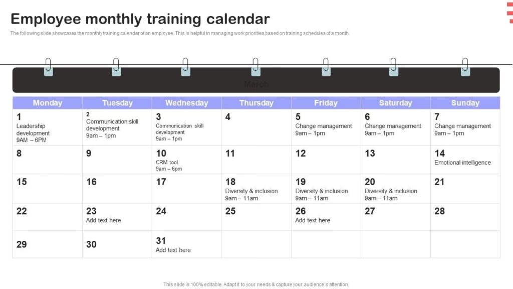 A world-class training calendar or program includes a schedule of training sessions, outlining activities, and the allotment of the right timeslot. The right type of training will help the employees start well, and shine across multiple departments. calendar templates How do I create a training calendar for my employees?